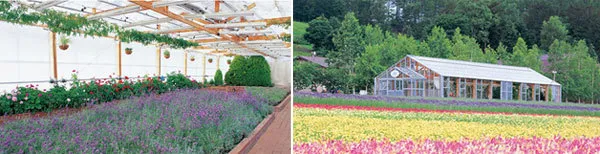 为了减少非开花季节农场观赏性不足的问题,富田农场内部建立了一个温室花棚。花棚里面不仅有薰衣草,还有其它五颜六色的各色花朵和观赏植物,比如粉色的天竺葵、淡蓝色和深紫色的薰衣草等。