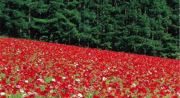 这是由红色、白色和粉红色的罂粟花组成的多彩花田,虽然是2017年才创建的新花田,但艳丽的罂粟花平铺山丘而下,在每年七月初至七月下旬,都会吸引不少游客观赏。