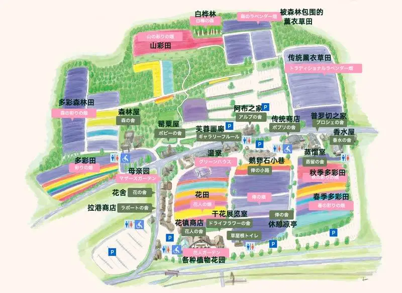 但由于森林之舍的特殊地理位置,农场会根据其周围花田的景观效果,适时开放或关闭。今年森林之舍的开放时间则是七月份,现已关闭。