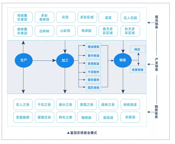 从山丘荒原到1.5亩的薰衣草田、18亩薰衣草田,再到薰衣草田观光、薰衣草加工,逐渐形成一条完整的生产(种植)、加工(独创技术)、销售(情景销售+网店)产业链,富田农场成功经营的要诀主要有: