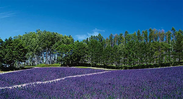 这是富田农场薰衣草的起源之地,也是日本现存最古老的薰衣草田。这里主要种植着淡紫色、紫色和深紫色等不同类型的薰衣草,游客们沿着斜坡爬到山顶,不仅可以看到像紫色地毯那般铺开的花田美景,还可以欣赏到整个富良野盆地乡村美景和十胜岳山脉全景。