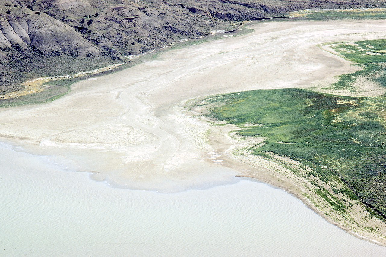 湖泊不仅是恐龙生前的乐园,还成了它们死后永恒的墓地。巨大的恐龙死亡之后,其遗体被冲入湖底,然后被湖底的沉积物覆盖,之后经过了亿万年的地质作用,完成了化石化的过程。