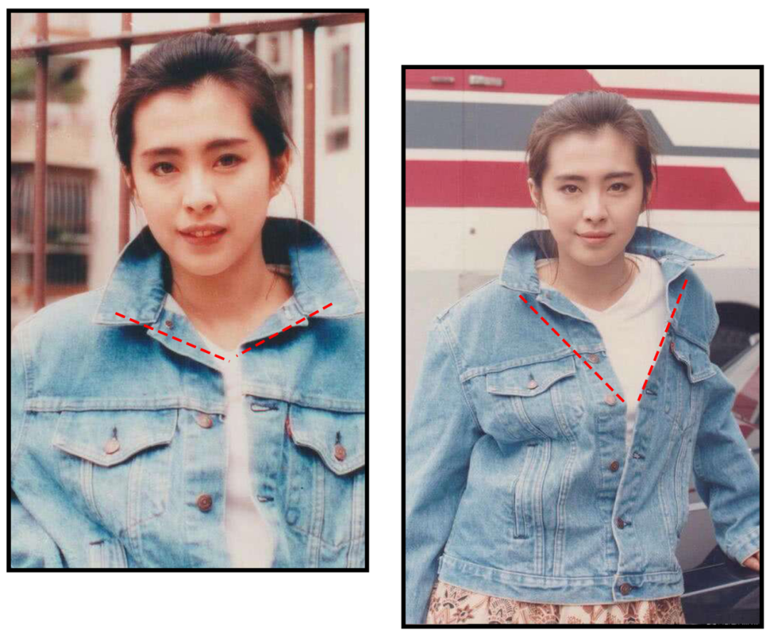 同一套衣服,如果把领子更V一些,马上整体气质就出来了,即使右边脸还更带点疲态。