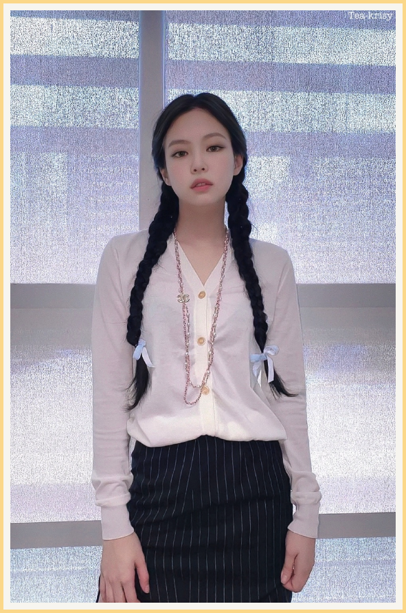 今早看到Jennie的一张照片,虽然不是lob头,但几乎完美符合显脖子长的要点:
