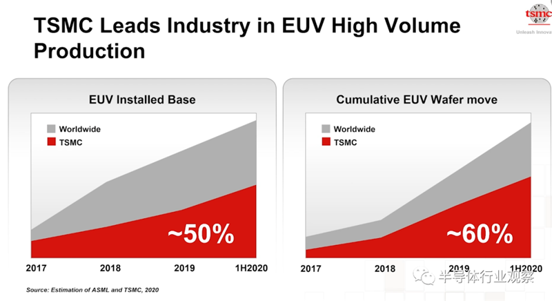 台积电在5nm将全制程采用极紫外光(EUV)技术,秦永沛表示,台积电EUV机台占全球比重达50%,晶圆移动占全球比重更超过60%,预计透过累积更多成功经验,是台积电的竞争优势。
