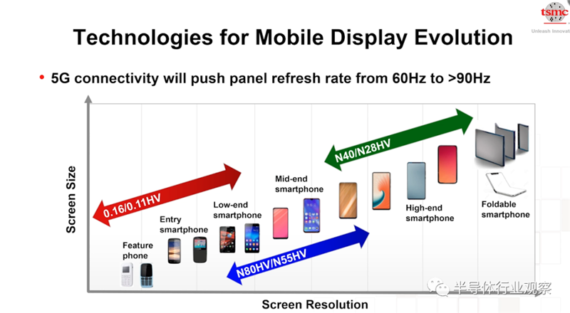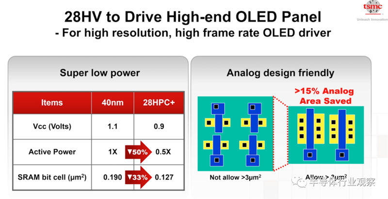 Display方面,LCD屏幕发展了很多年,最近OLED诞生以后,整个产业与技术都在大幅成长。从8寸到12寸,台积电都有相关服务提供。其中最新的就是28HV技术。