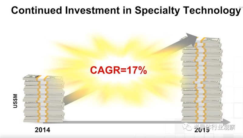 台积电也在积极增加特殊制程产能,秦永沛表示,台积电特殊制程产能持续成长,2015年占总产能约38%,今年特殊制程产能将较去年成长10%,占总产能比重将高达54%。
