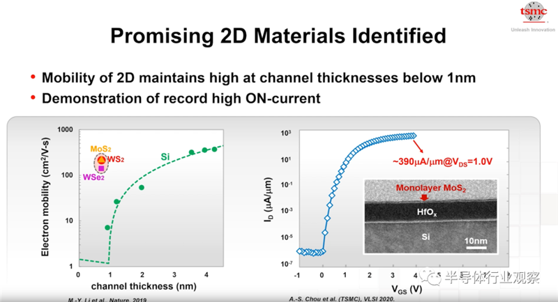 来到2D材料方面,张晓强表示,台积电认为包括硫化钼和硫化钨在内的的一系列硫化材料显示出非常好的特性。能符合未来的小节点的沟道各种需求。从下图右可以看到,台积电基于硫化物2D材料获得了历史新高的On-current。