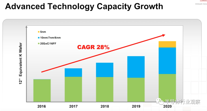 在产能方面,他指出,自2016年至2020年以来,台积电年复合成长率达28%的速度成长。