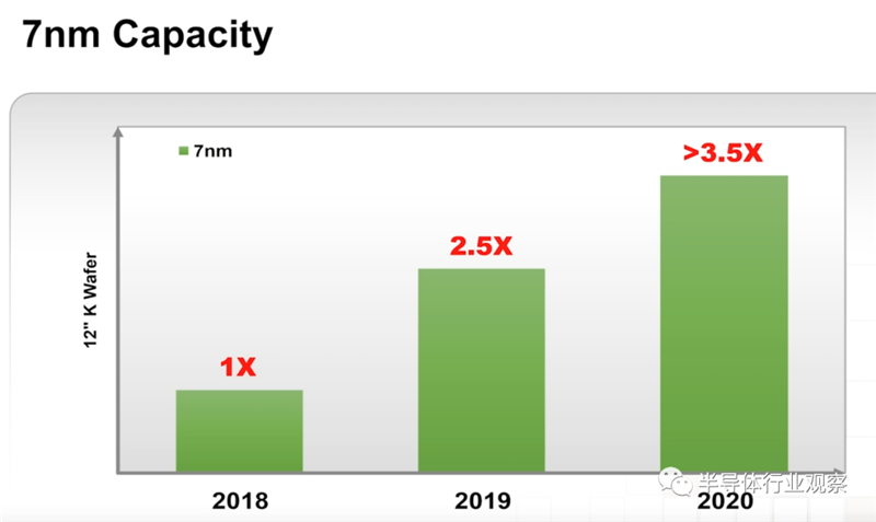 台积电2018年导入7nm量产,因客户需求非常强烈,快速提升7nm产能,估今年7nm产能将较2018年成长超过3.5倍。