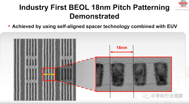 目前,台积电在EUV方面有了一个创举,通过他们的实现,获得了业界最小的mental pitch。这对于未来的晶体管的微缩,是非常重要的。