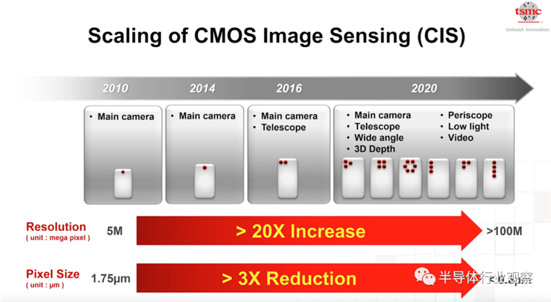 还有CIS领域,目前手机上携带镜头现在越来越多,技术也在继续进步。台积电的技术非常适合推进产品的发展。