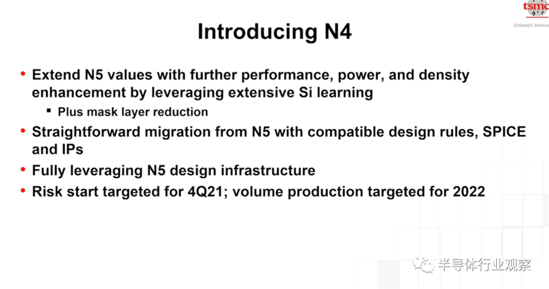 张晓强在会上表示,台积电还基于N5的平台推出了一个N4工艺,新工艺的速度、功耗和密度都有了改善。而其最大的优势同样是在于其与N5兼容的设计规则、SPICE和IP。这样的话,使用5nm工艺设计的产品能够轻易地转移到4nm的平台上来。这也能保证台积电客户在每一代的投资,都能获得更好的效益。N4试产将在2021年第四季度,而量产将会在2022年实现。