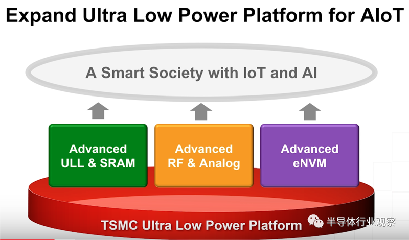 刘信生指出,台积电在基本的逻辑技术基础上,会加上先进的ULL&SRAM、RF&Analog以及eNVM技术,实现低功耗以及模拟技术的提升。这是所有产品的基础,可以在此框架上实现整合。