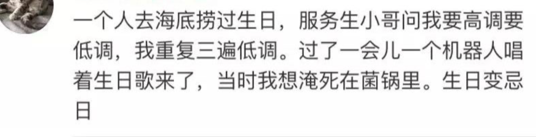 有的人表示“太尴尬了”,“再也不会让海底捞服务员知道我生日了”。