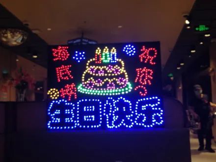 如果你想在工作人员围绕着你唱生日歌的时候,默默隐于包围圈中间,那你就想错了。比肩追星现场的五颜六色的灯牌,就是献给寿星的大写加粗高亮。它被点亮的那一刻,就在向店里所有人宣告:大家快来看!就是ta!过!生!日!