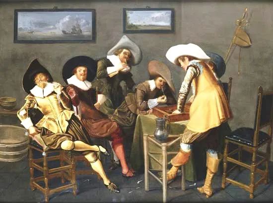 男士们一起抽烟,玩西洋双陆旗