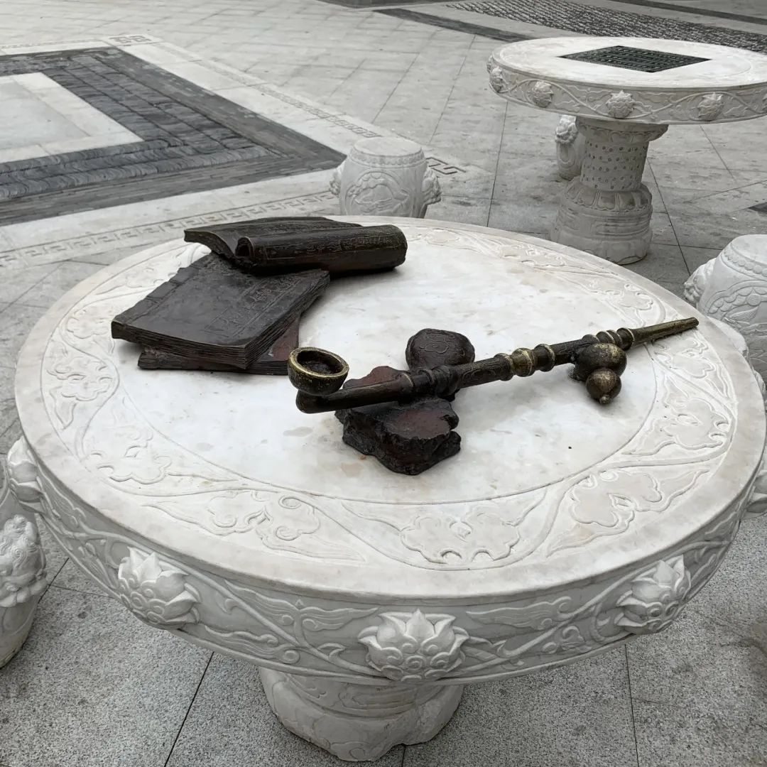 北京西城区京韵园内的纪晓岚烟袋杆雕刻品