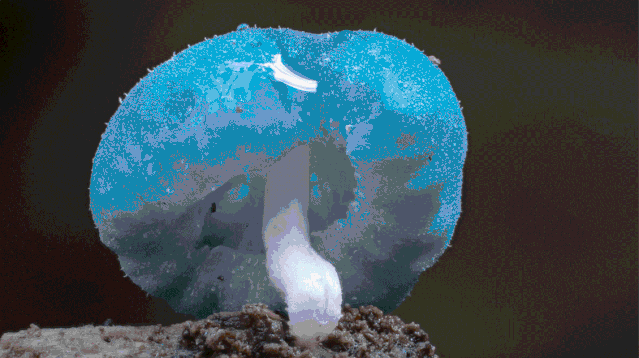 这是我最喜欢的蘑菇之一。它叫 炫蓝小菇 。
