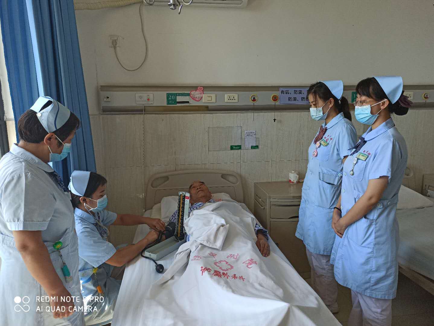 漫长难熬的深夜,病患处痛得睡不着,也不敢让家人知道疼痛,有一次看到查房的赵宁宁护师,松开白天做完手术的临床老病员,胳膊上检测血压的包裹物,从抽纸包里取出抽纸,包在老人胳膊上、再重新裹上血压包裹,这个细节被小编看到,默默地记在心里,陕中附院的护师就是如此地呵护病患,细微的爱心正是高素质白衣天使的活生生的表现,记住在心里就必须写在这里!