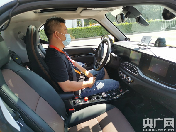 记者体验无人驾驶共享轿车(总台央广记者佟亚涛 摄)