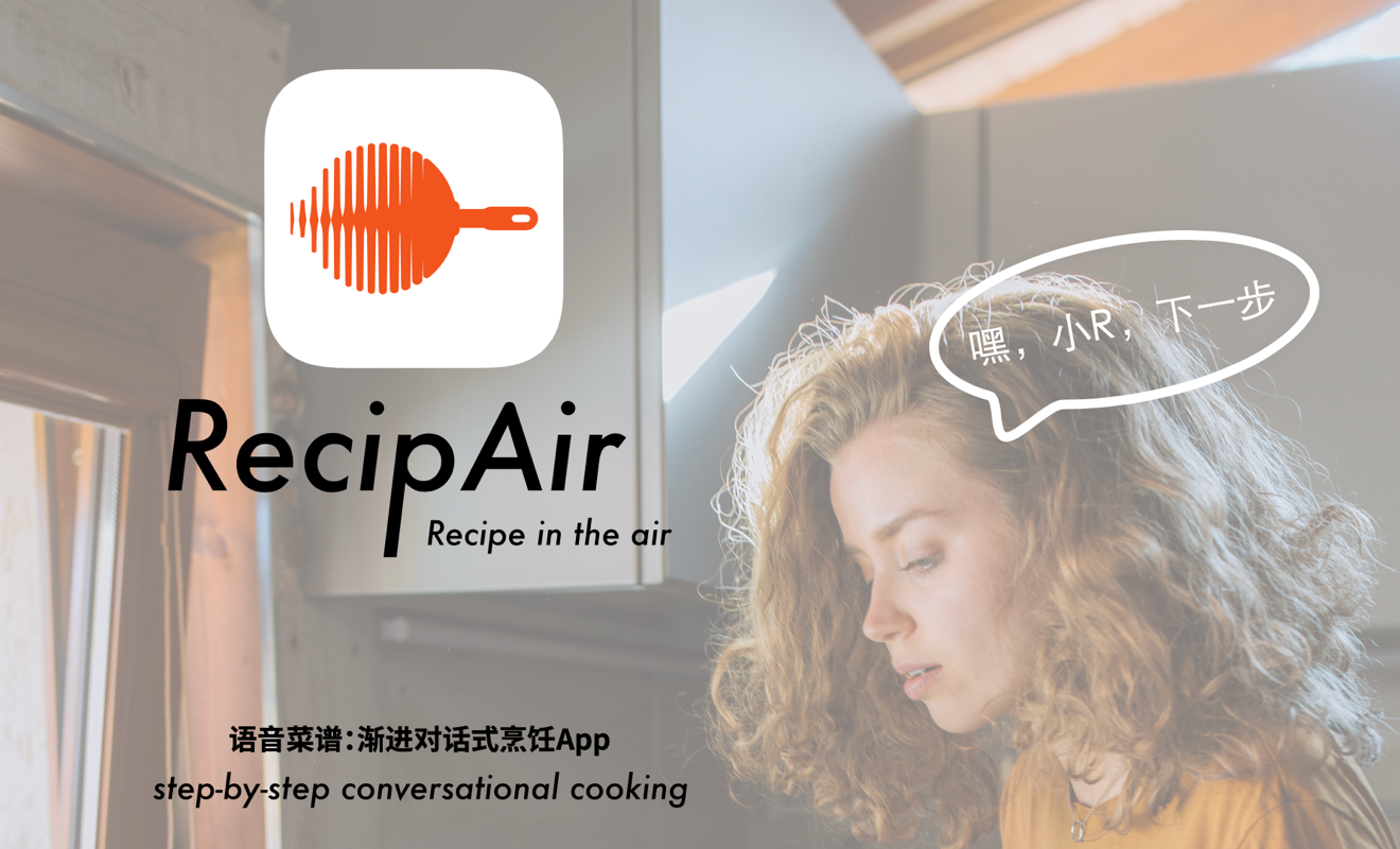 第三组作品来自华东理工大学团队,《RecipAir》是一款主打语音交互的菜谱类app,在整个烹饪过程中,用户通过语音来调整菜谱进度,查找食材,相比原来的触控交互,在厨房场景下,对于正在烹饪的用户更加友好。