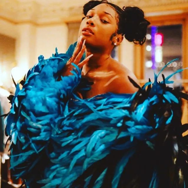 这个牌子风格浮夸常常被Madonna等一线女明星穿着表演,前两天Megan Thee Stallion也穿了杨丞琳同款的裙子出现在VOGUE的内页中。