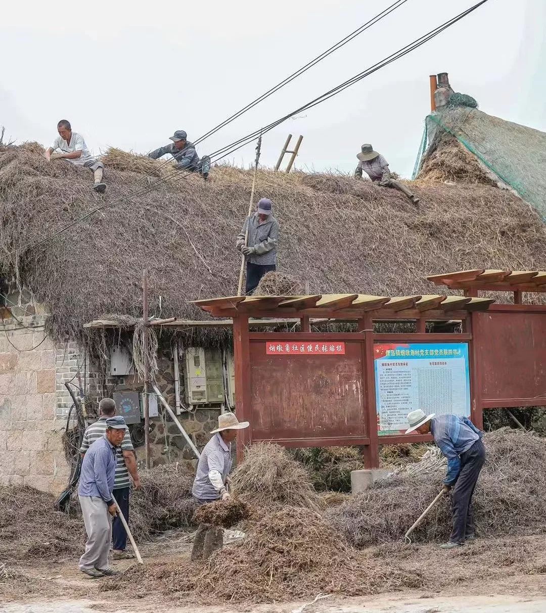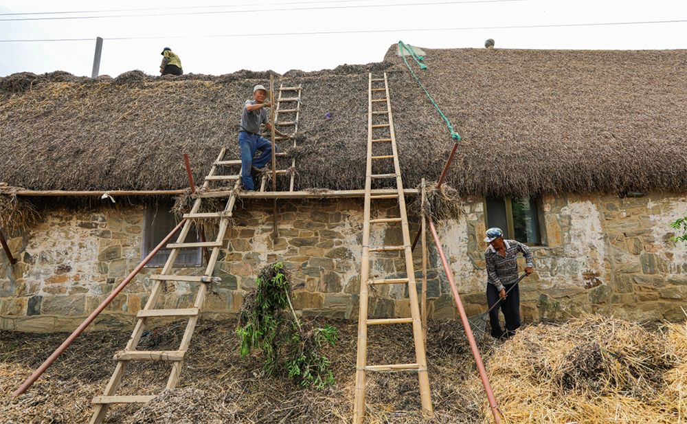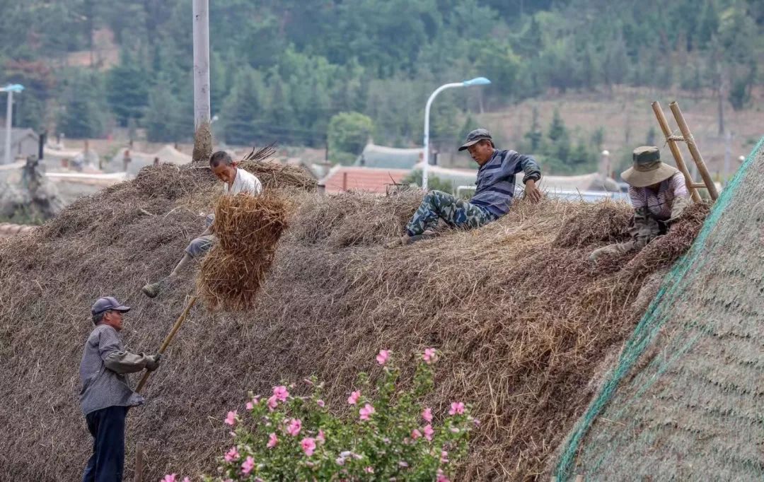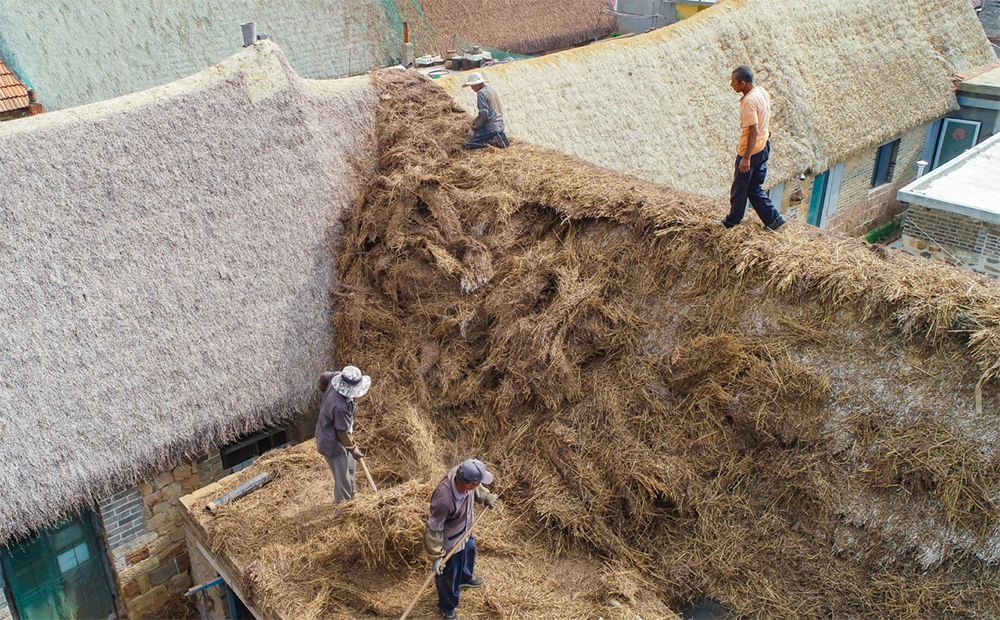 修缮和维护海草房。 图/@中国荣成