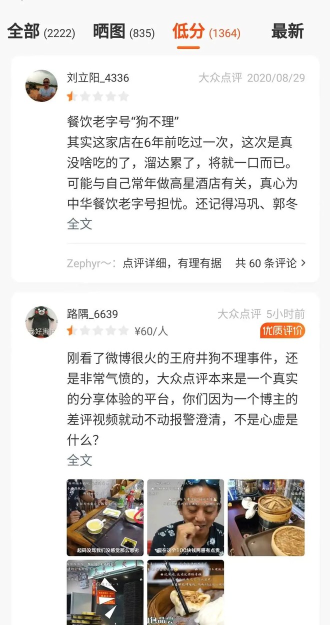 狗不理这几年在北京关了11家店,仅剩前门、王府井两家店。其中一家店2222条评论中有1364条低分评价,另一家则集齐了5365条“差评”。
