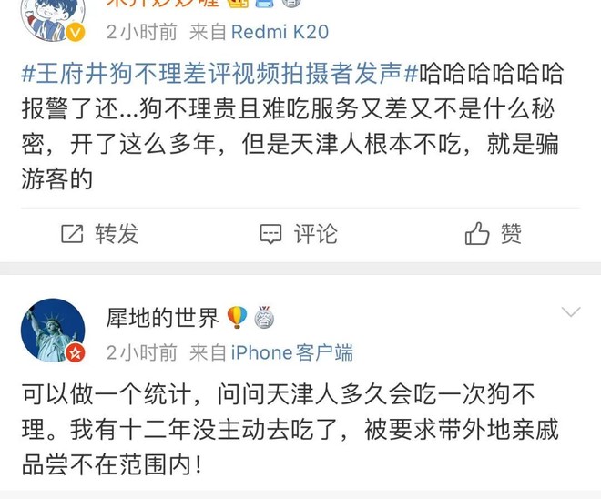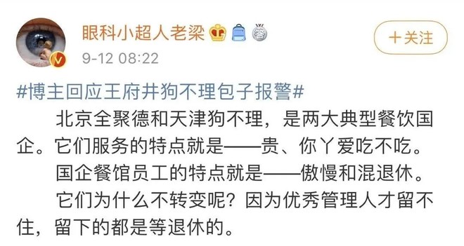 狗不理的服务也遭到吐槽,服务员爱答不理、表情冷漠、傲慢。这在不少其他老字号也能经常看见。