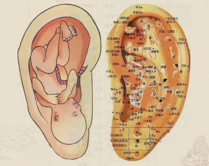 耳朵与脏腑经络联系之密切。现代医学在生物全息疗法的系统中,将耳朵看作是整个人体的缩影,耳廓上的近百个穴位,反映着全身各系统、器官的机能状况,称之为耳穴。