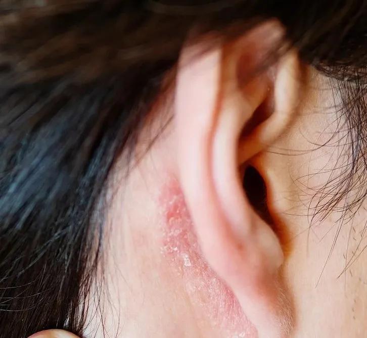 ◎耳廓上产生白色的糠皮样皮肤脱屑,擦之不宜除去,常见于各种皮肤病。