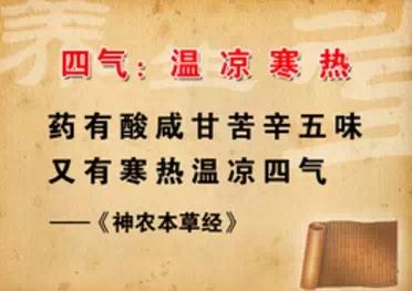 四气:主要是指中药的寒、热、温、凉四种不同的性能。中医药草最讲究相对立的药性,比如“寒凉”与“温热”,有共性也有程度的差别,一般的理解寒也是凉,温也是热。但凉比寒要轻一些,温比热要轻一些。
