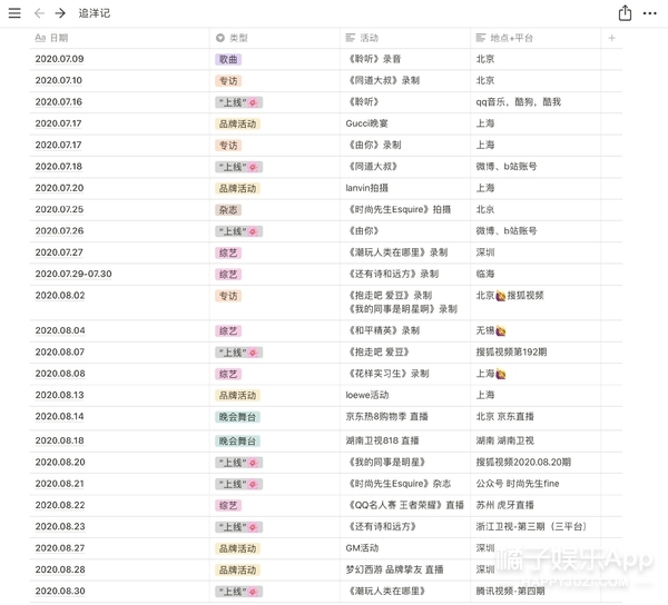 从官博发布的成员九月行程来看,