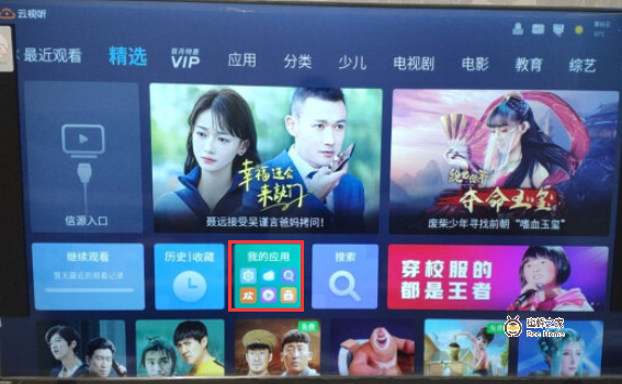 1、打开东芝电视进入主页,在【精选】页找到【我的应用】并打开