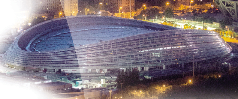 国家速滑馆:国家速滑馆又名“冰丝带”,是北京2022年冬奥会北京赛区标志性的新建竞赛场馆,将进行冬奥会速度滑冰项目的比赛。国家速滑馆以冰为设计象征,速滑选手的竞速轨迹被诠释为立面的22条飘逸的丝带,而这22条丝带又代表着北京承办冬奥会的2022年。