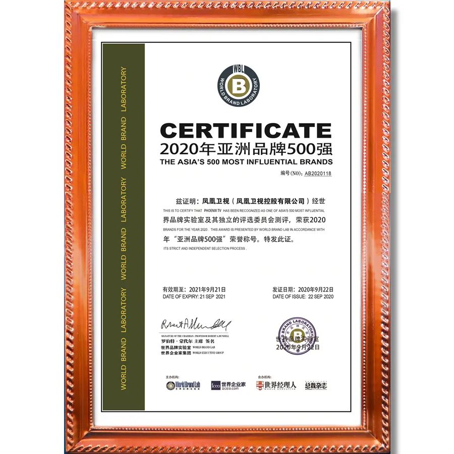 由世界品牌实验室(World Brand Lab)主办的第十五届“亚洲品牌大会”于9月22日在上海召开,会上发布了2020年《亚洲品牌500强》排行榜。在这份基于市场占有率、品牌忠诚度和亚洲领导力的年度报告中,凤凰卫视连续15年蝉联该榜单,并再次入选亚洲电视十大品牌四强。