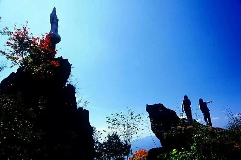 南宫山金顶主峰左侧岩壁就是传说中的“亿年丰欠石”,自古以来当地居民根据山体的颜色预示当年收成好坏。