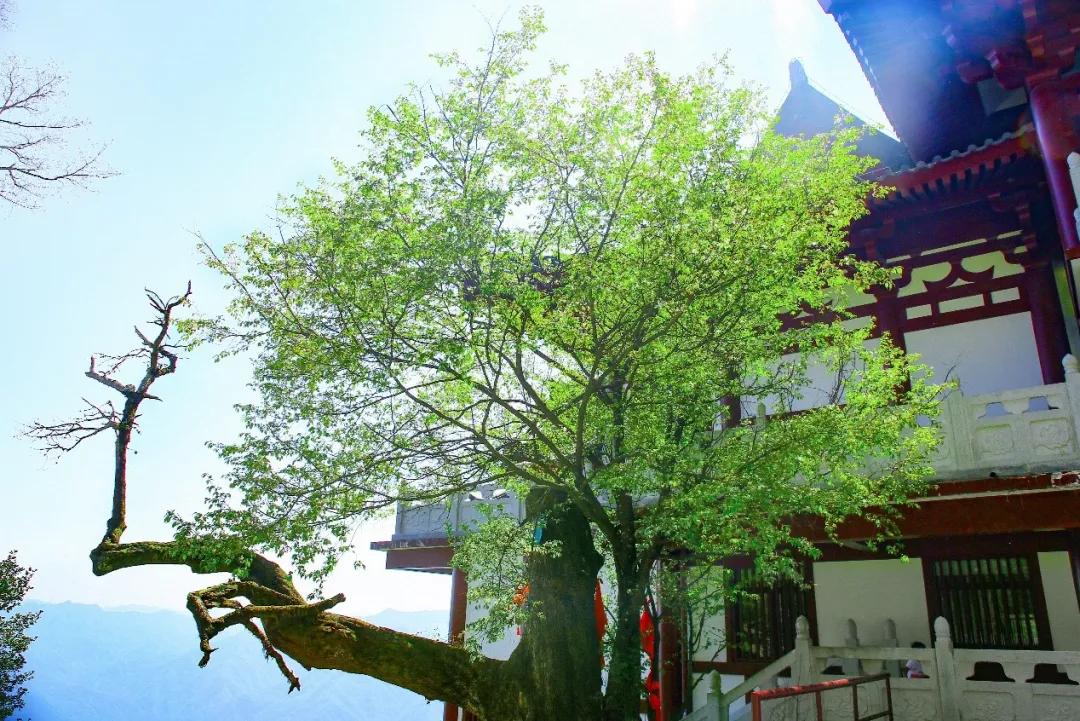 文革初期,庙毁佯死,叶落枝枯;十年动乱之后,古树复活,并在原树上寄生7种14株小树。千年古树,死而复生,实为千古之奇