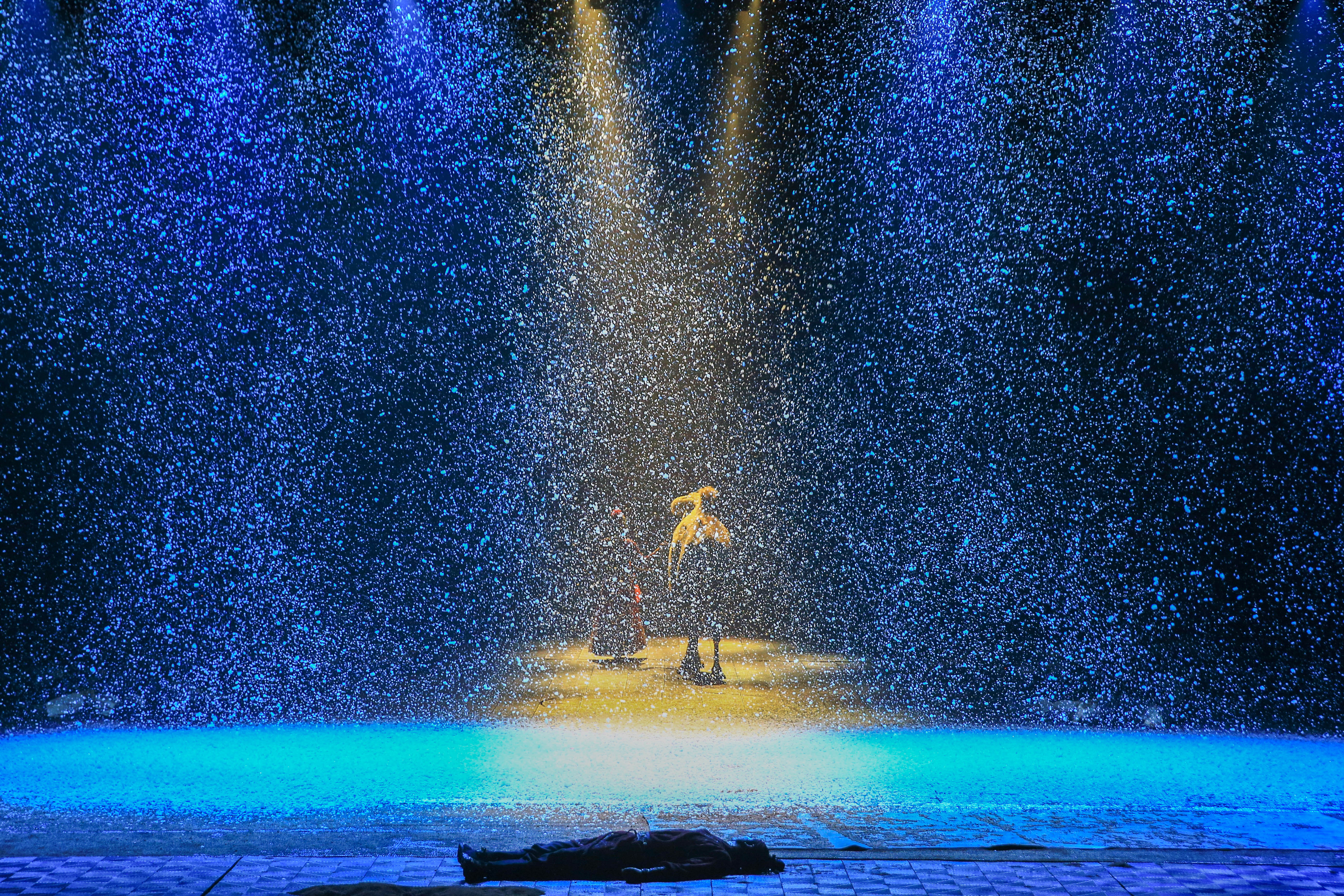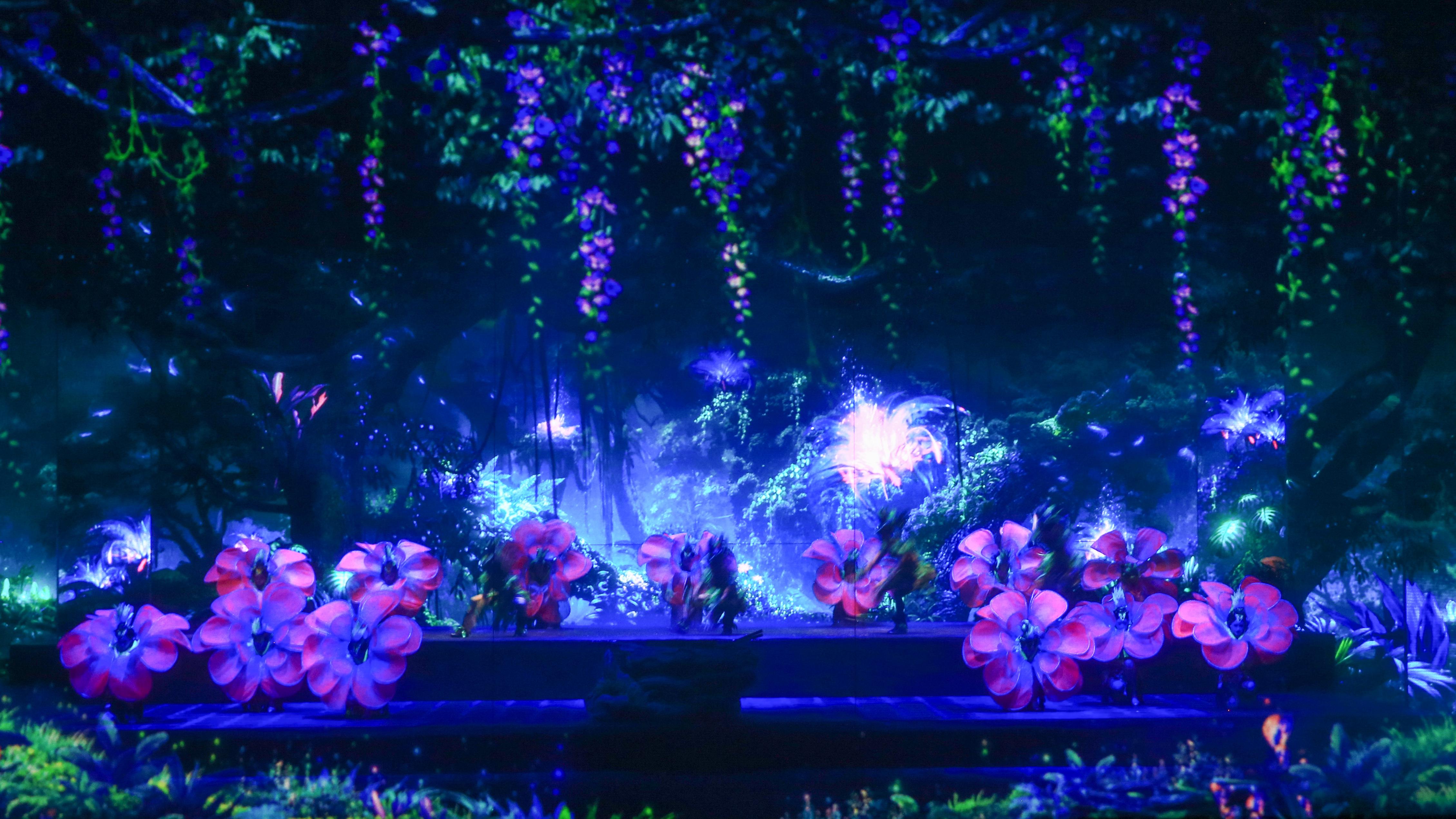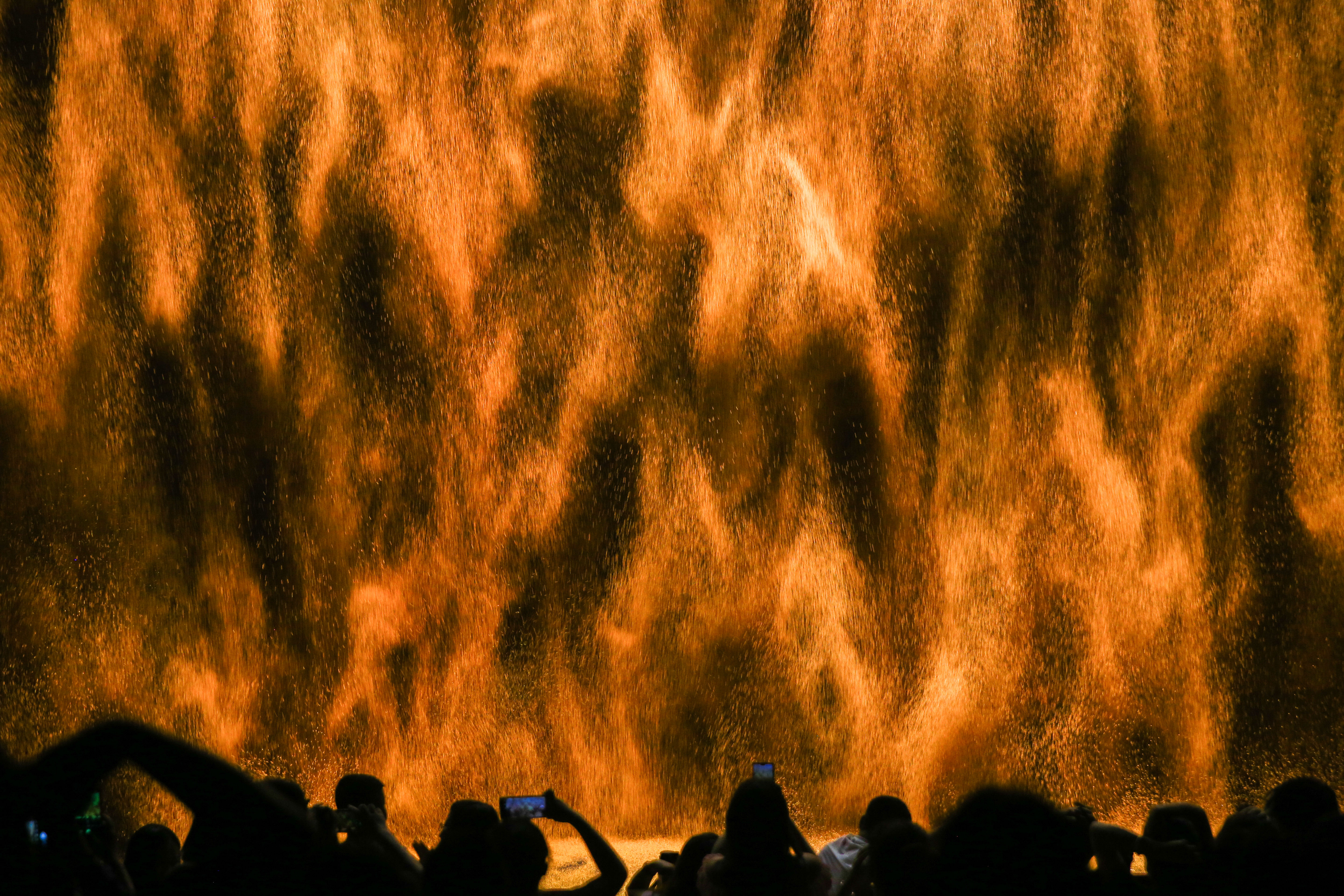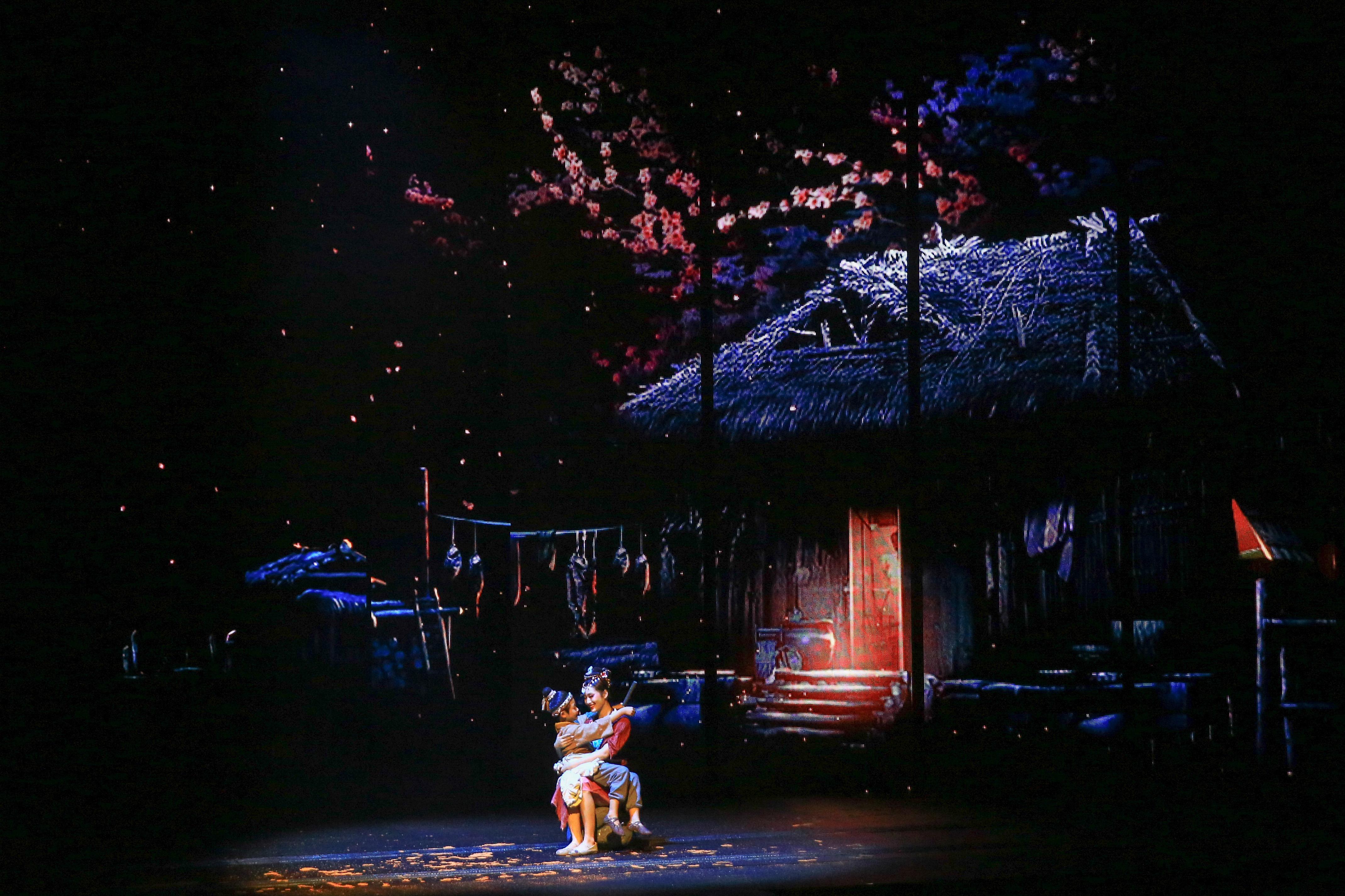 上万套机械与设备满场运转,三千吨大洪水倾泻而下,数百立方黄沙扑面而来,用虚实结合的表现手法打破舞台与观众区域的界限,沉浸式地感受一场艺术盛宴。