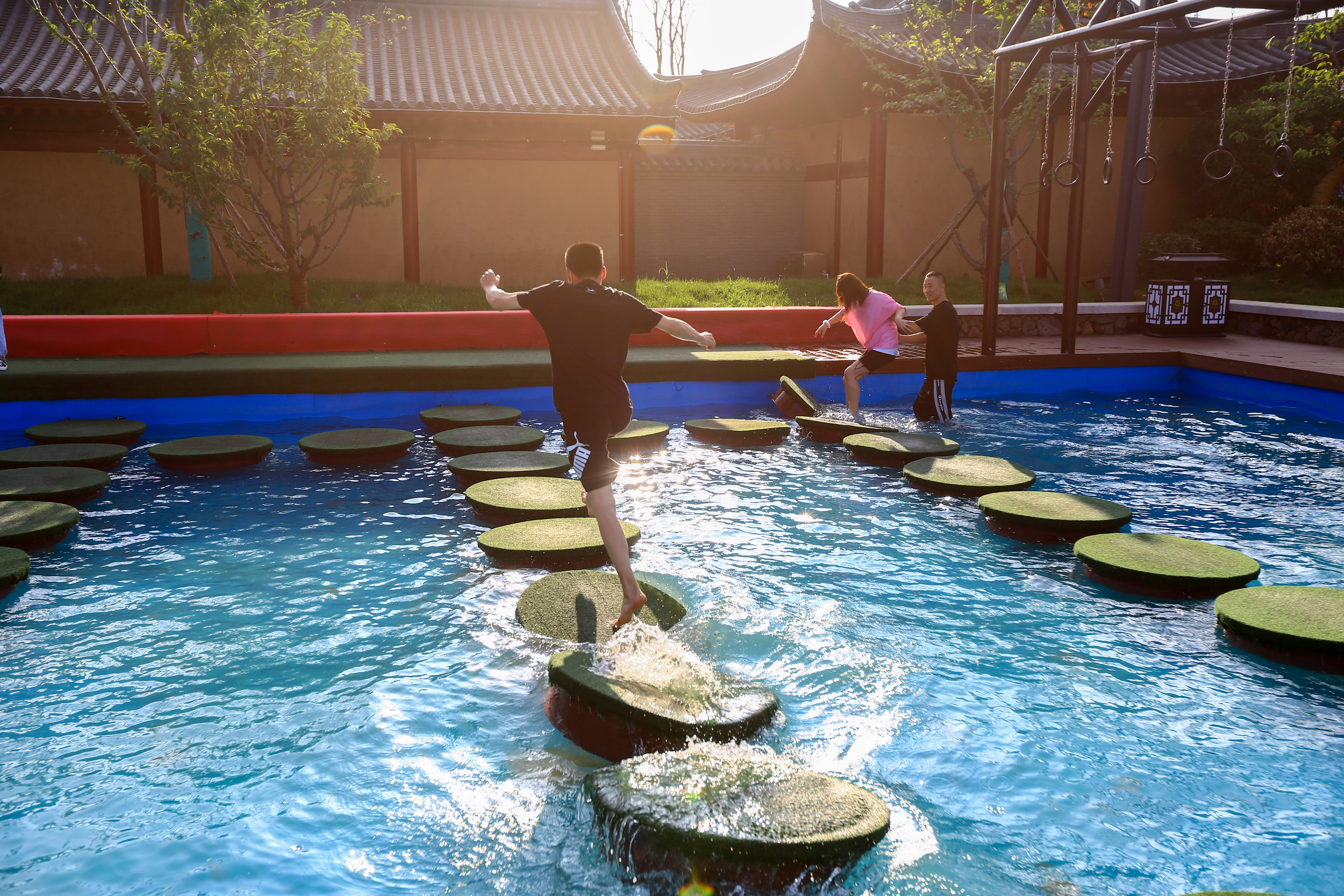 赶上好天气,许多游客还去挑战“水上飞人”项目,只是不小心就成了“落汤鸡”,不过还是值得去挑战一次。