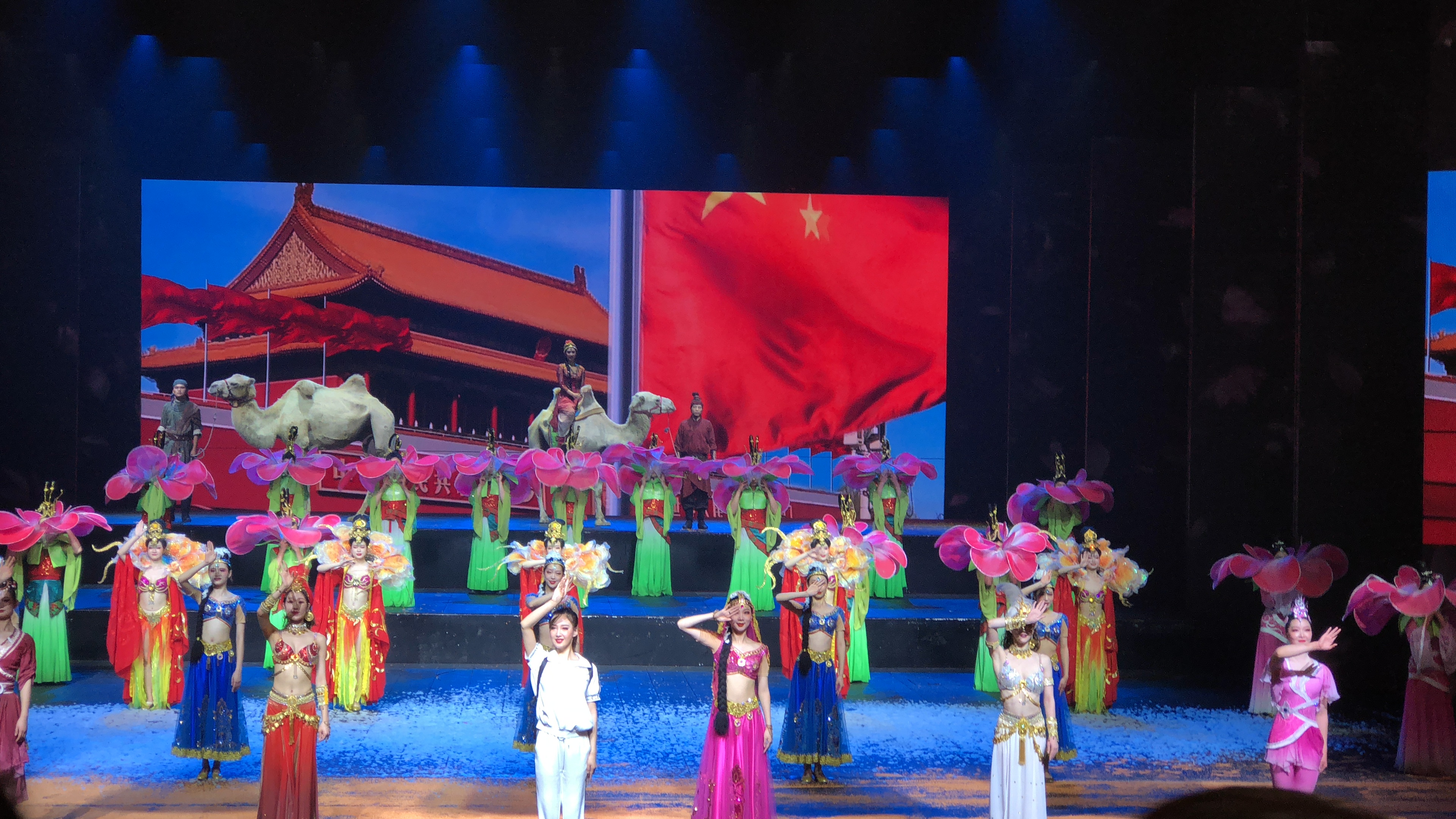 这正是《西安千古情》彩排现场“伟大复兴”的壮丽一幕。