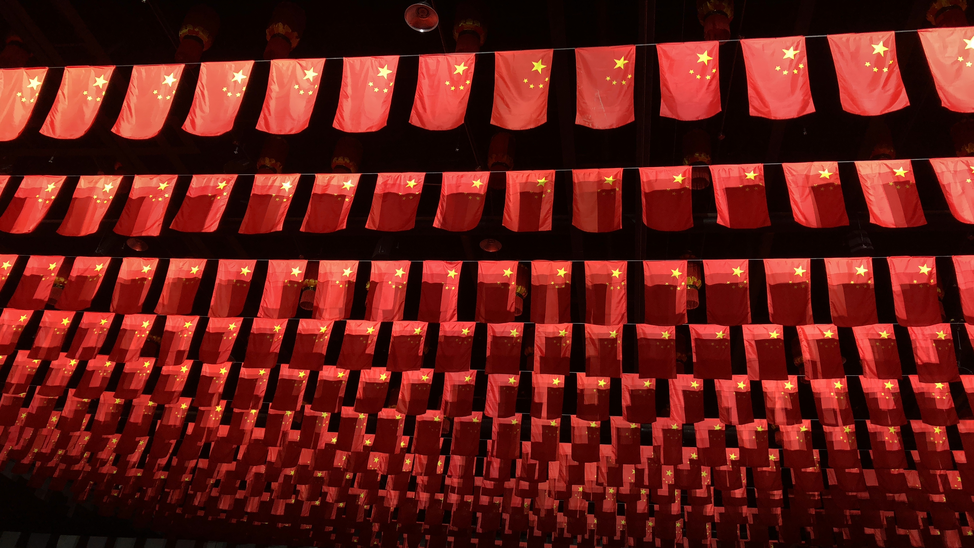 “我和我的祖国,一刻也不能分割,无论我走到哪里,都流出一首赞歌……”在《我和我的祖国》的悠扬歌声,西安千古情大剧院数千平方米的巨型红旗方阵从天而降,宛如红色的河流,穿越整个剧院上空,带着历史节奏与时代步伐徐徐向舞台中央推进。