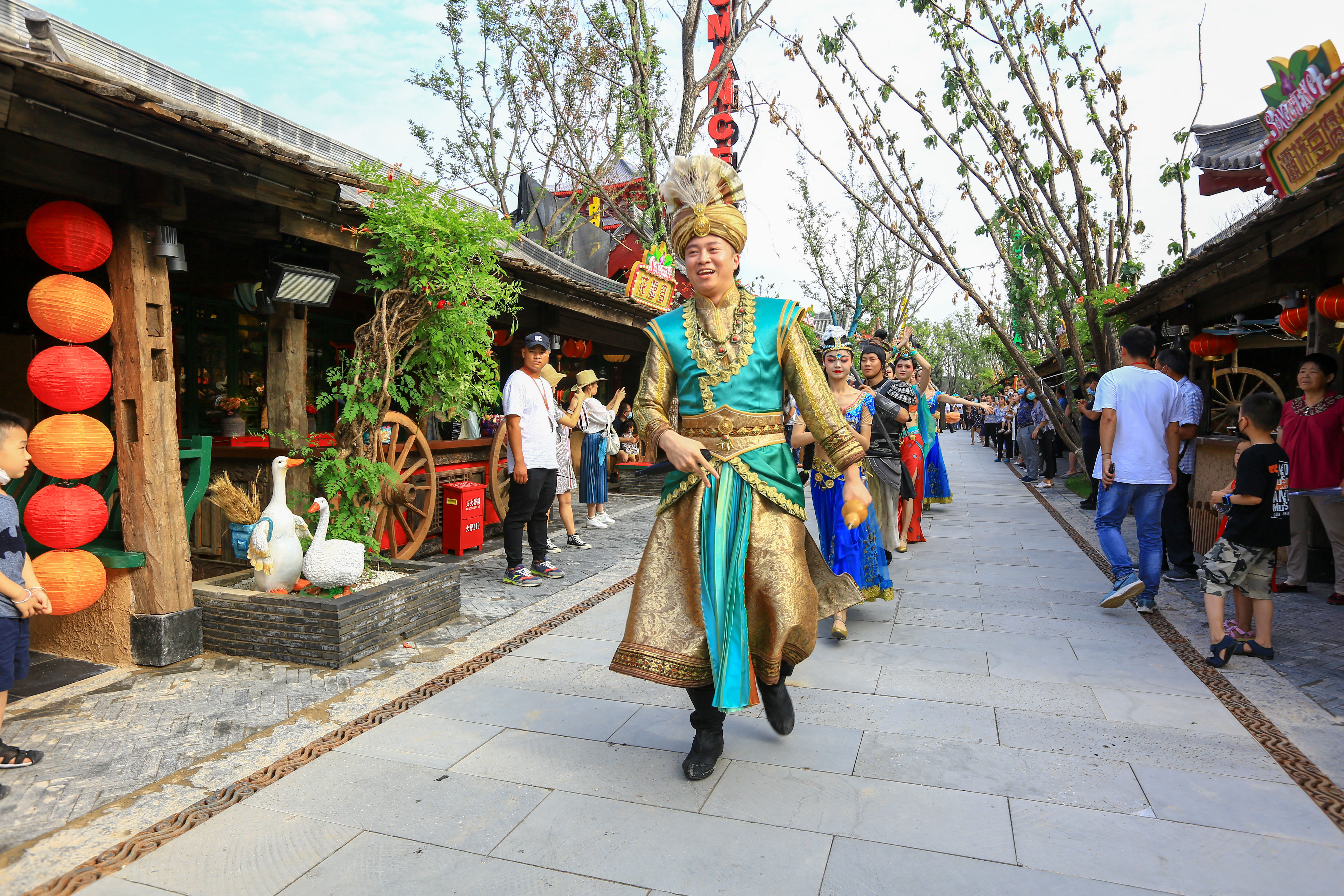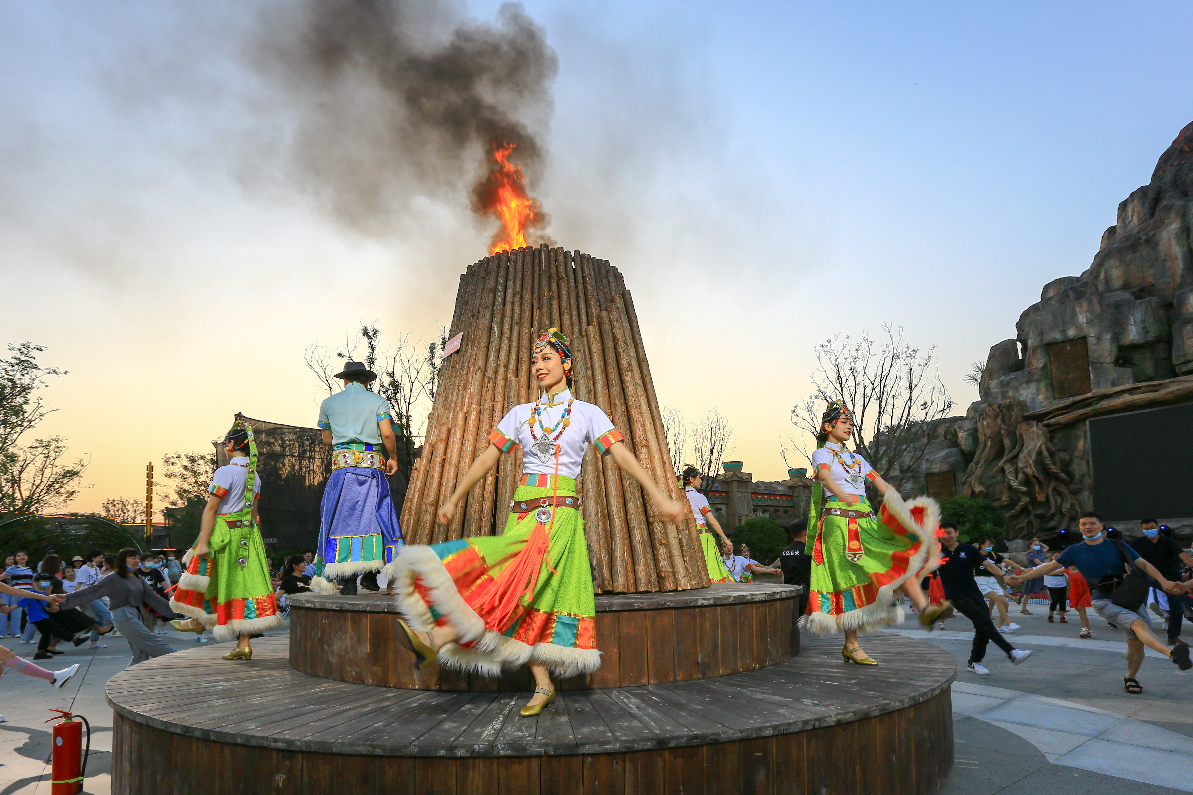 景区内每天在不同时间段,都有一些互动式演出,比如抛绣球选亲,广场锅庄舞,快闪等。游客可以参与景区内演员一起跳舞。