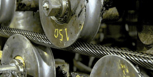 这么多股钢索拧结出来的一根钢缆绳,很难保证是完全的笔直,这就需要用到很多的滚轮进行形状校直。