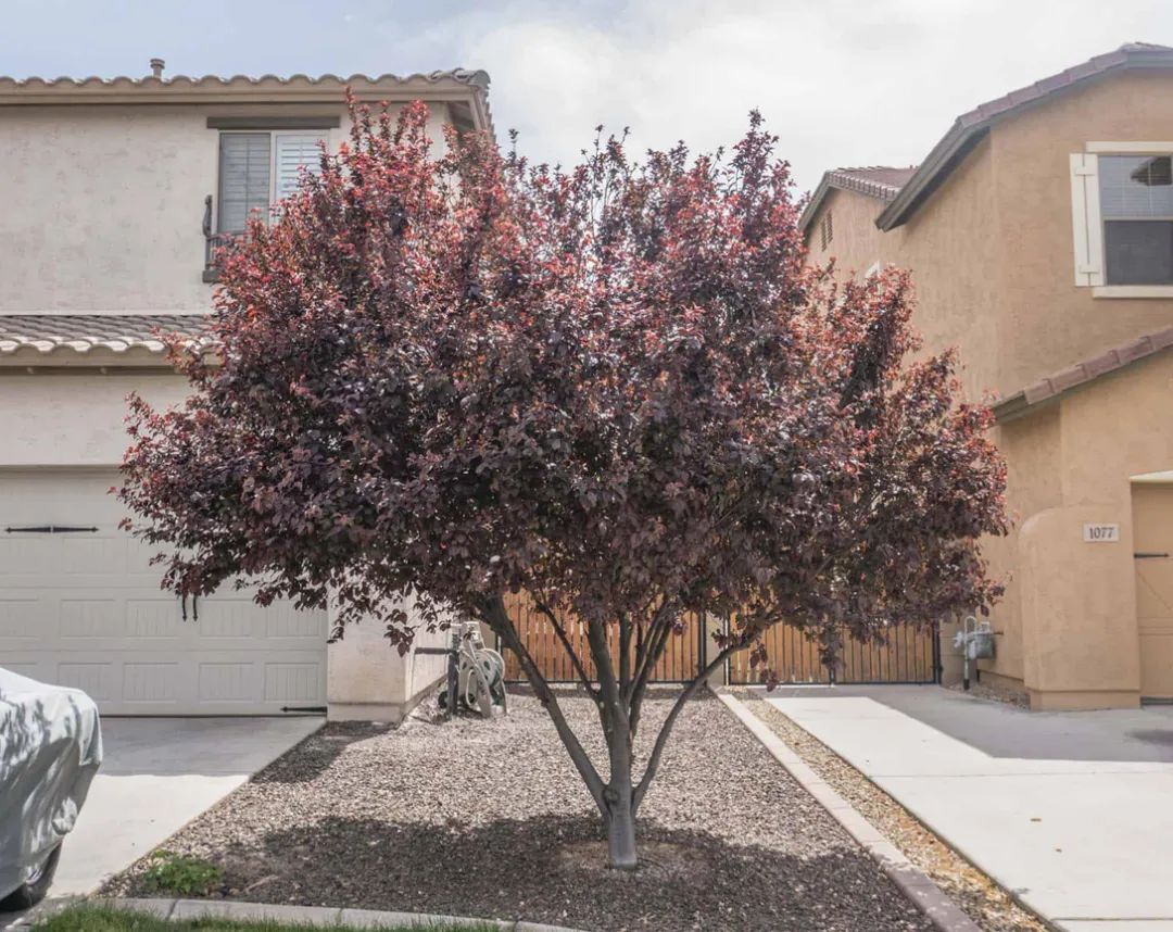 另外,在北美洲很多人都喜欢种只开花而不结果的李子树观赏,甚至多过果树,所以购买时要看清楚。此外开花李子树有很多种颜色,除了比较普通的白花种,还有粉色花的,甚至好像下图有深紫色叶子的(紫叶李“火山” ),完全是为装饰用的。