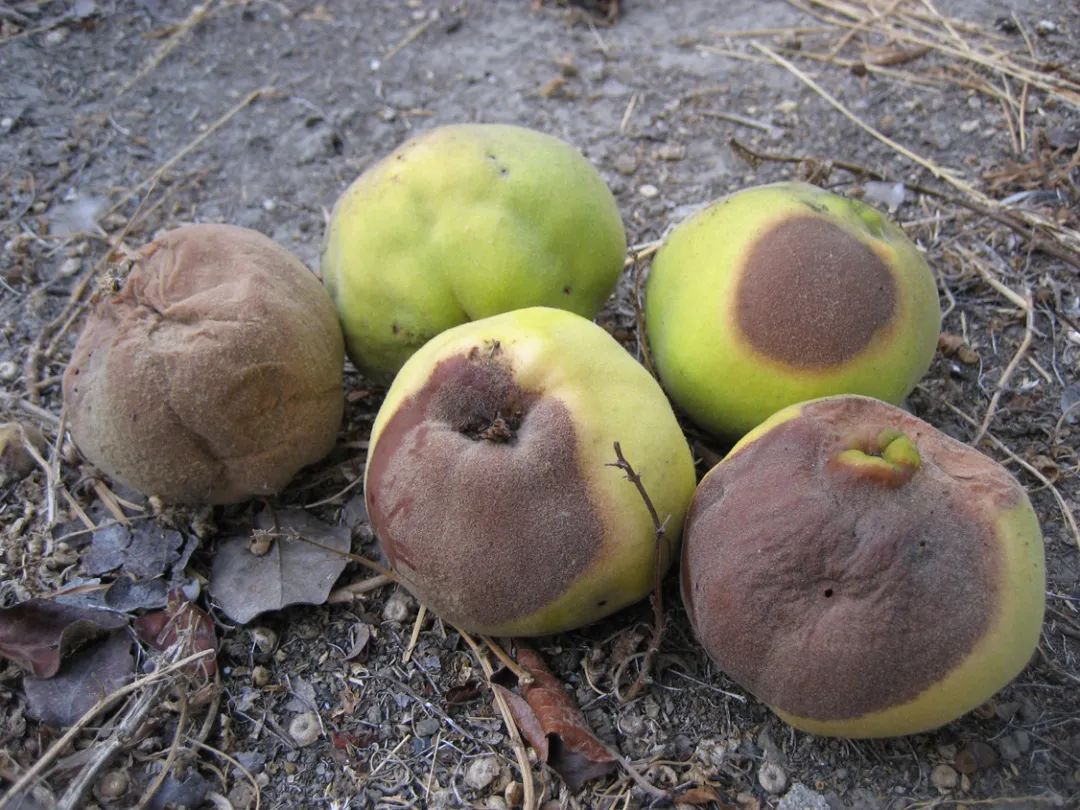 另一个可能出现的病害是褐腐病,最初一点征兆也没有,然后就见到果实上出现褐色的斑点。然后扩大,及变黑变烂。很多果树都有可能得这个病,包括:樱桃,杏,桃子等。