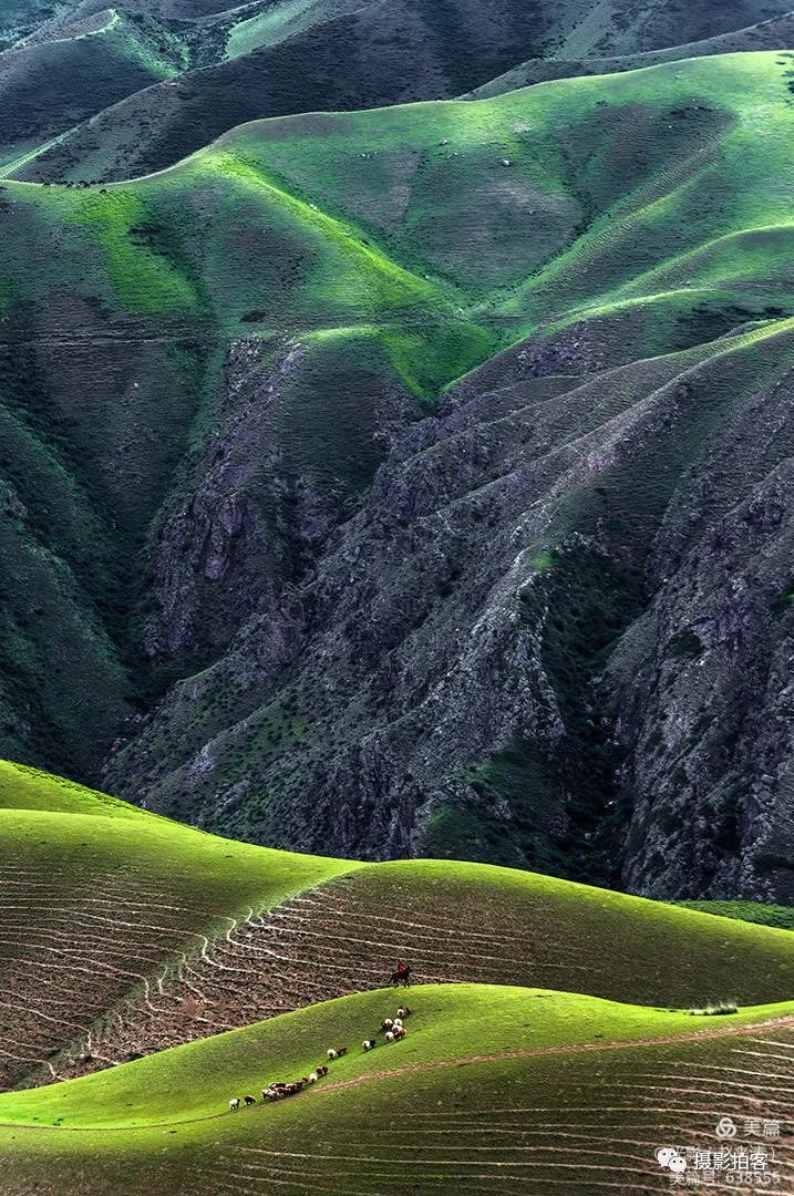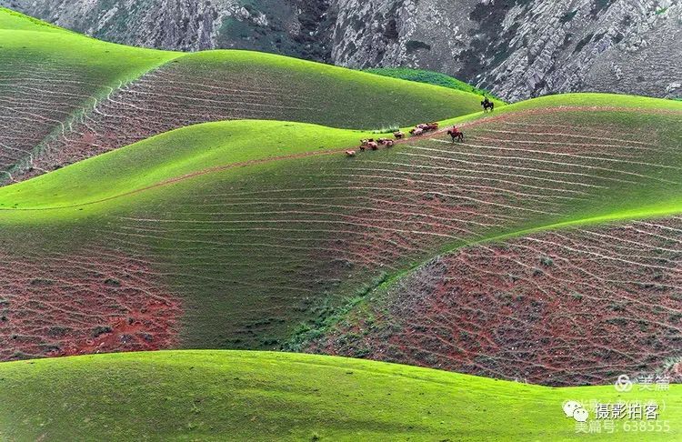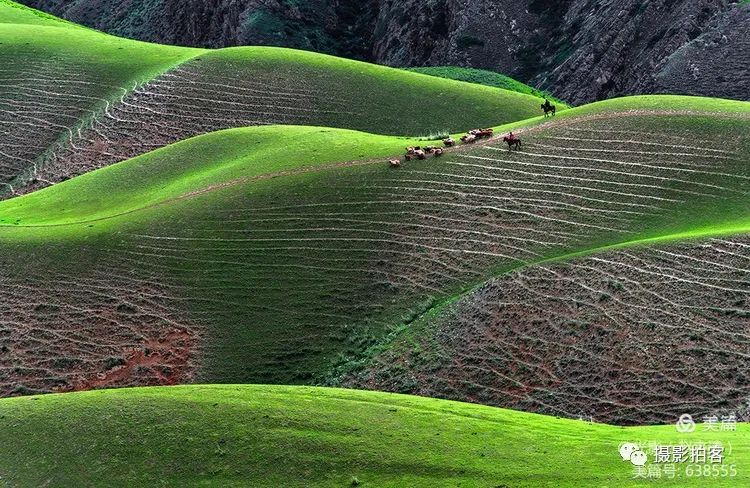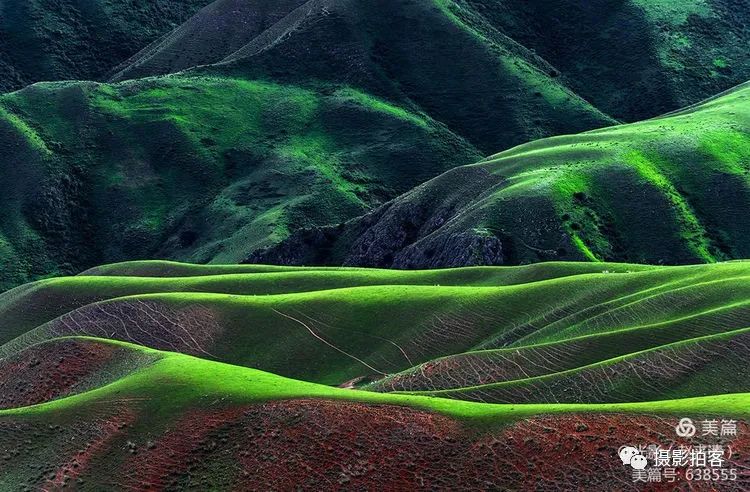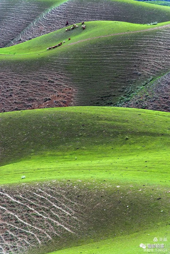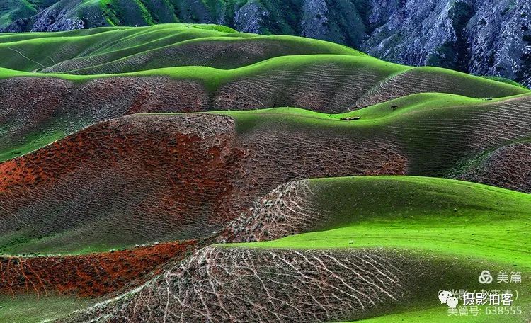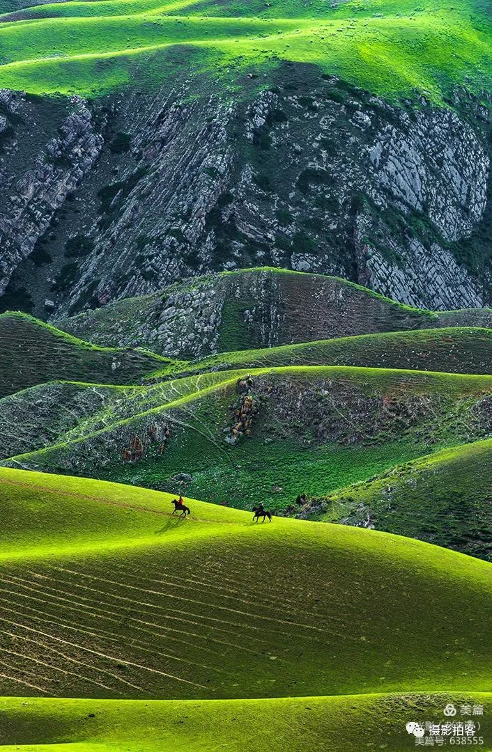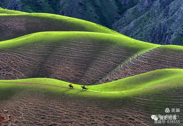 人体草原,是自然形成的沟壑,犹如女性柔美的身体曲线,在明暗光影里尽显妖娆,这一片草甸被誉为最美的“人体草原”。