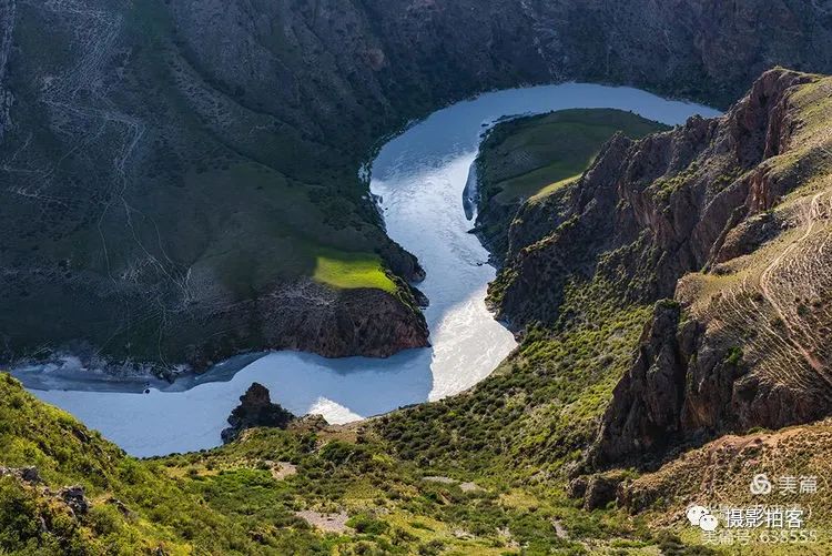 阔克苏大峡谷之中美丽的阔克苏河蜿蜒曲折,崖岸陡峭,地势险峻,形成了九曲十八弯、人体草原、鳄鱼湾等自然景观。这里群山环绕,山峦重叠,谷间河水平缓,波光荡漾,河湾植被郁郁葱葱,炊烟和着林间轻雾,牧民的毡房若隐若现点缀其间,一派壮美而又不失旖旎的峡谷草甸风光。