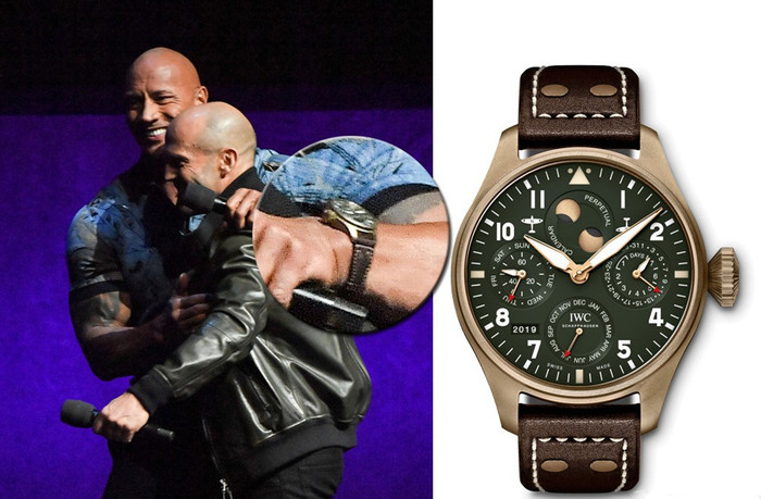 除此之外,强森还戴过万国的飞行员喷火战机系列腕表,也是大表径,公价22.3万。